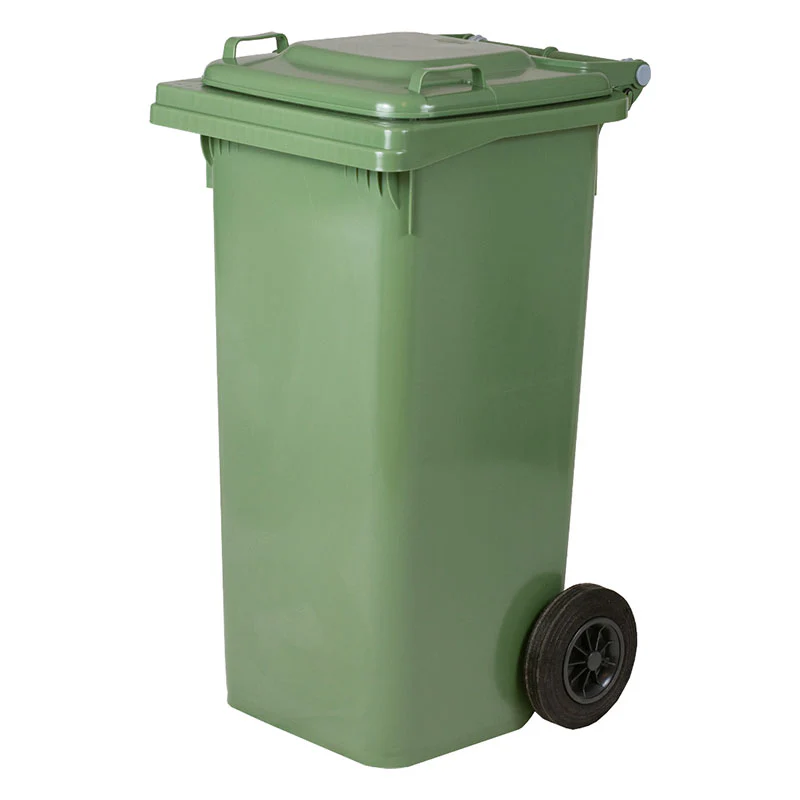 Contentor do lixo 120 litros com rodas e tampa ao melhor preço. Contentor de lixo prático e manuseável graças às pegas e rodas sólidas.