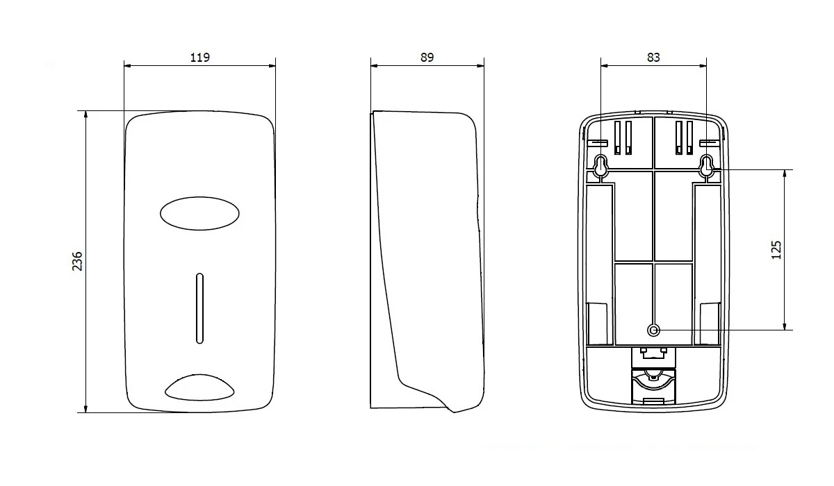 - Dimensões: Altura: 226 mm; Comprimento: 119 mm; Largura: 89 mm;