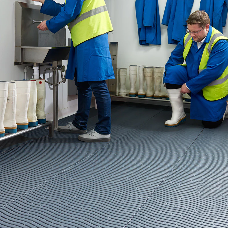 Reduz acidentes de escorregões e tropeços ao fornecer boa tração para pés descalços, sua construção de plástico macio ao toque também amortece e reduz danos por impacto em caso de queda, reduzindo assim a probabilidade de ferimentos graves.